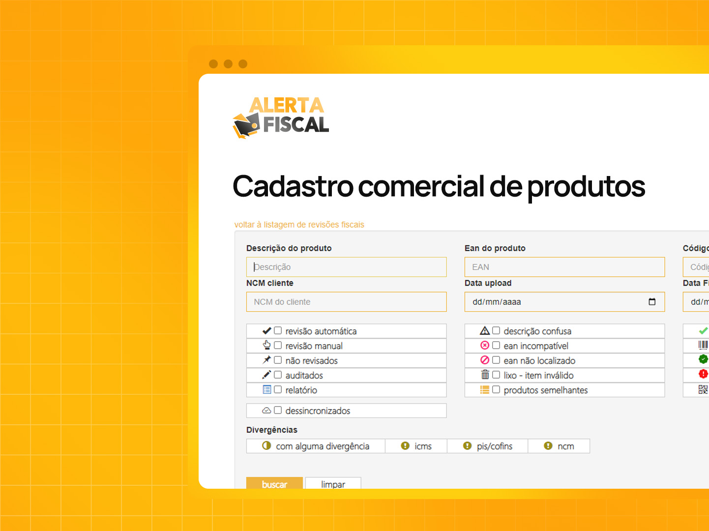 O Alerta Fiscal automatiza desde o cadastro via EAN até a atualização fiscal contínua, garantindo precisão desde a origem, para que você chegue em 2026 com tudo preparado.